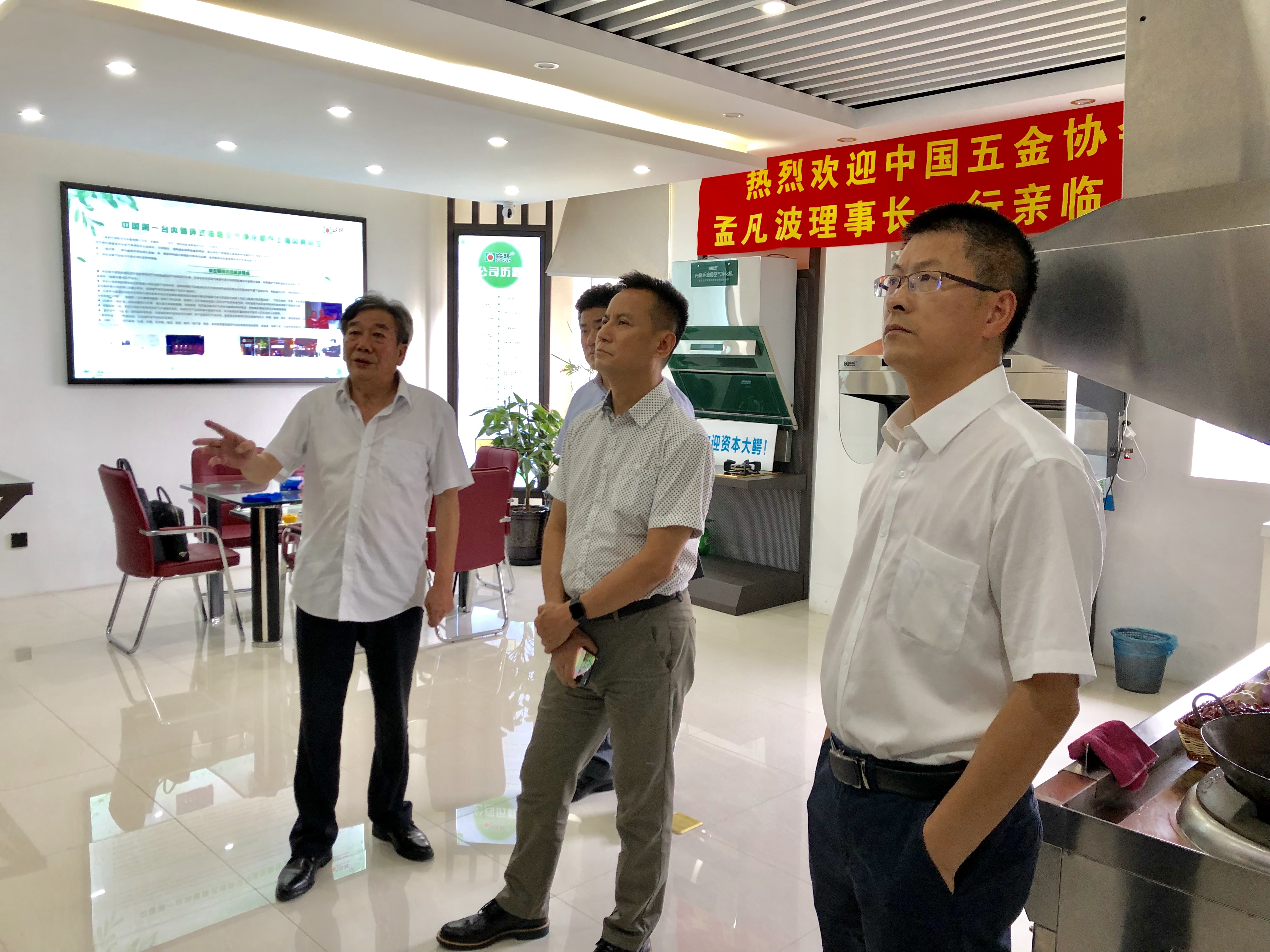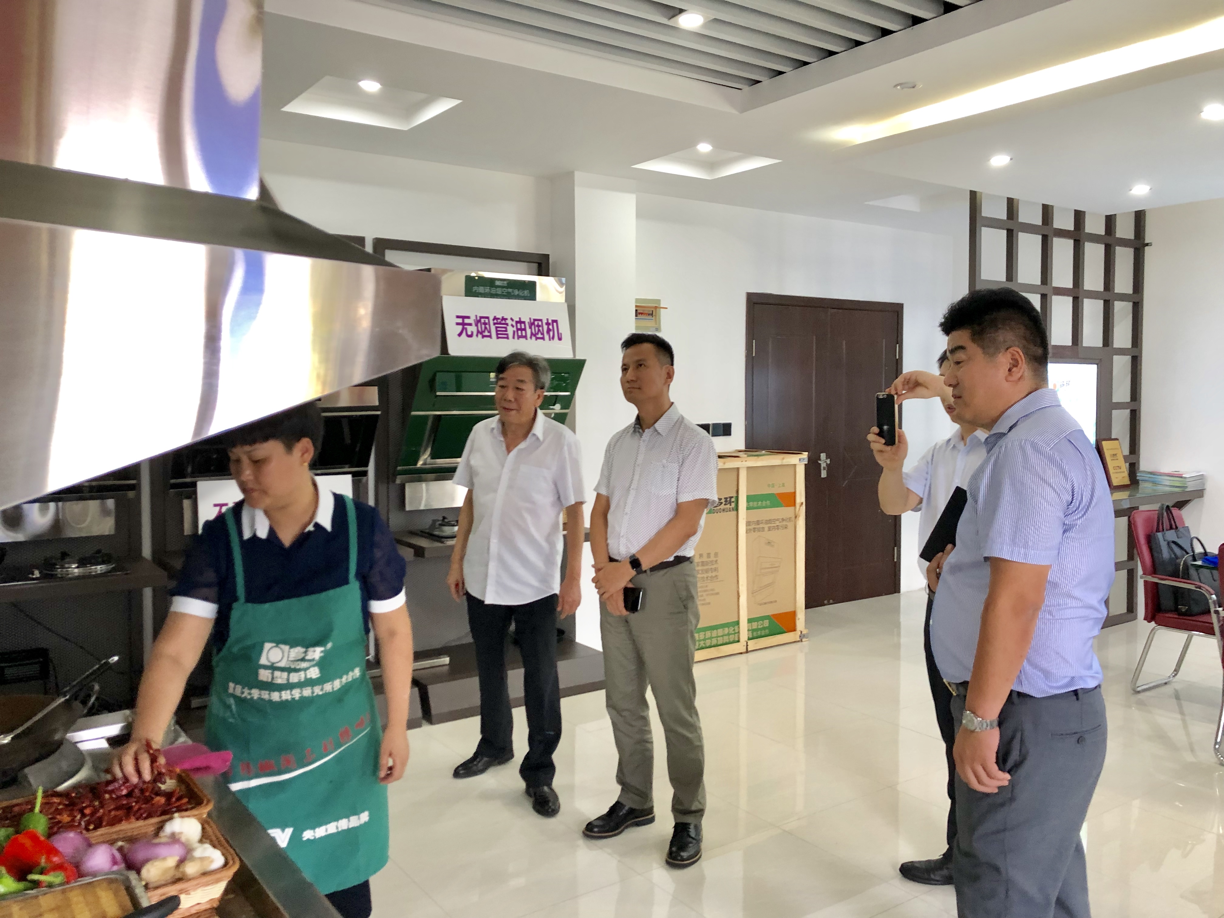 2019年8月12日,中國五金協會吸油煙機分會理事長孟凡波、復旦大學環境科學研究所所長張仁熙及業內相關專家一行,專程前往上海多環油煙凈化設備有限公司參觀調研。